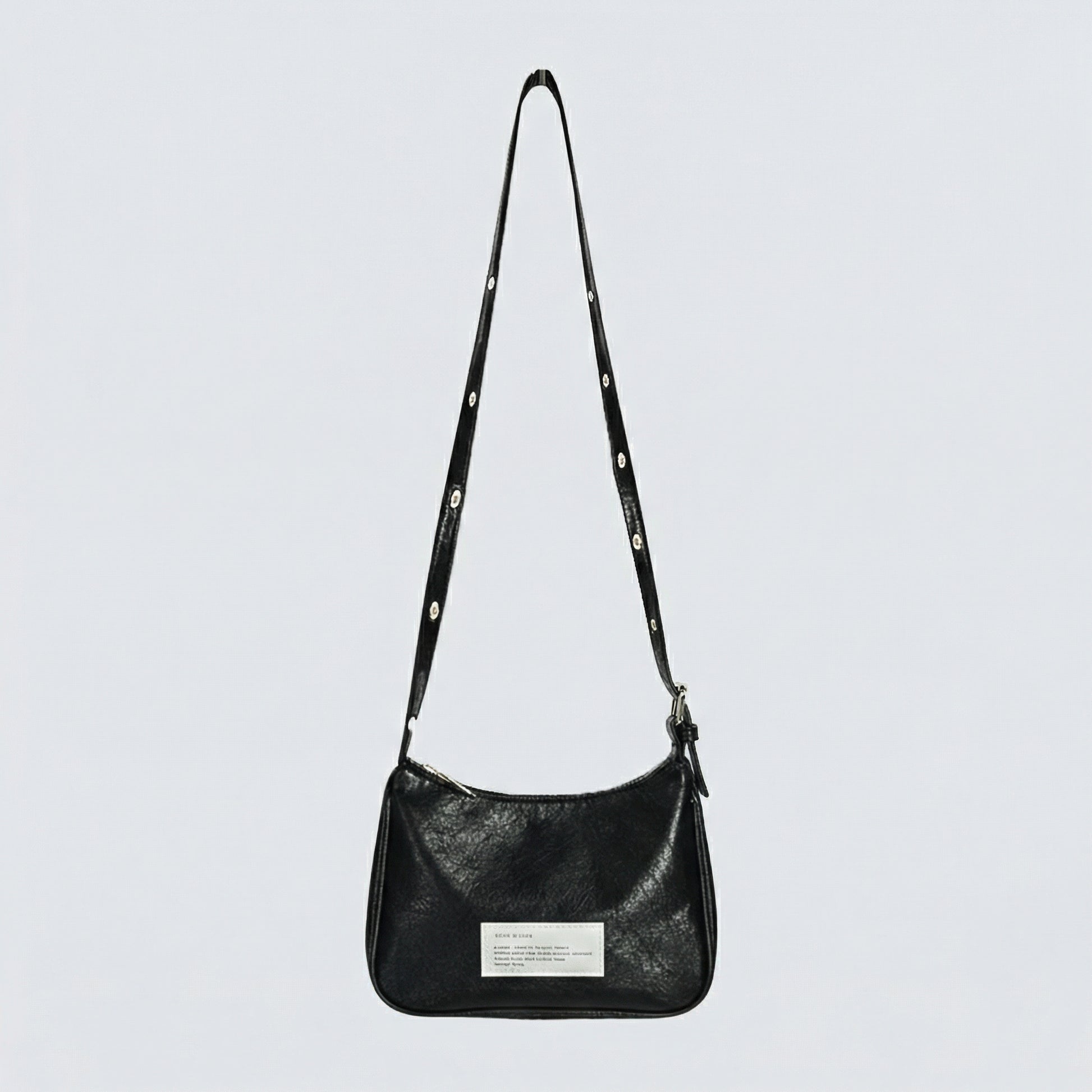 A sleek mini bag crafted with a refined crack-texture finish, featuring an eyelet-adjustable strap that transforms effortlessly from a crossbody to a shoulder bag for versatile, elevated styling.