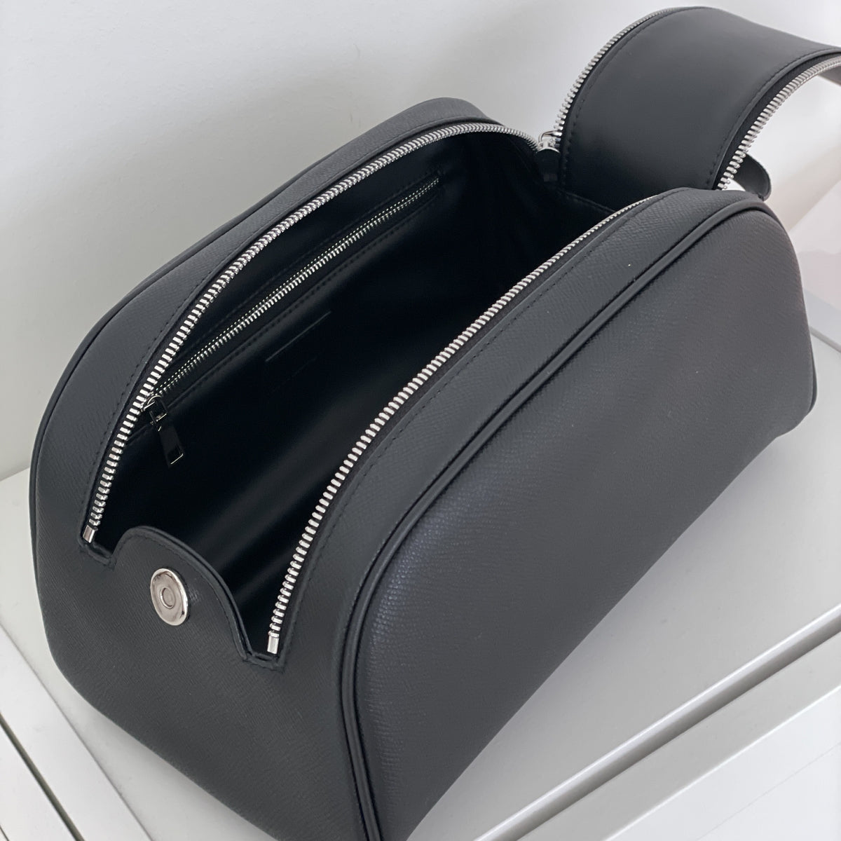 Crafted from premium cowhide leather, this bag features a distinctive double-zip design that blends clean minimalism with a quietly bold presence. The structured silhouette keeps its shape while remaining versatile enough for multiple uses, from a refined golf bag to a compact travel or everyday carry. Polished silver zippers add a modern contrast against the rich leather texture, while the sturdy handle strap provides comfortable handling and balance. Every detail—from the smooth zipper movement to the thoughtfully shaped form—comes together to create a bag that feels elevated, functional, and effortlessly stylish.