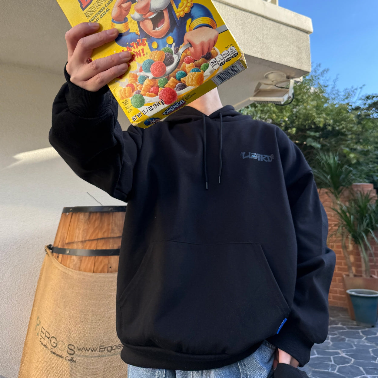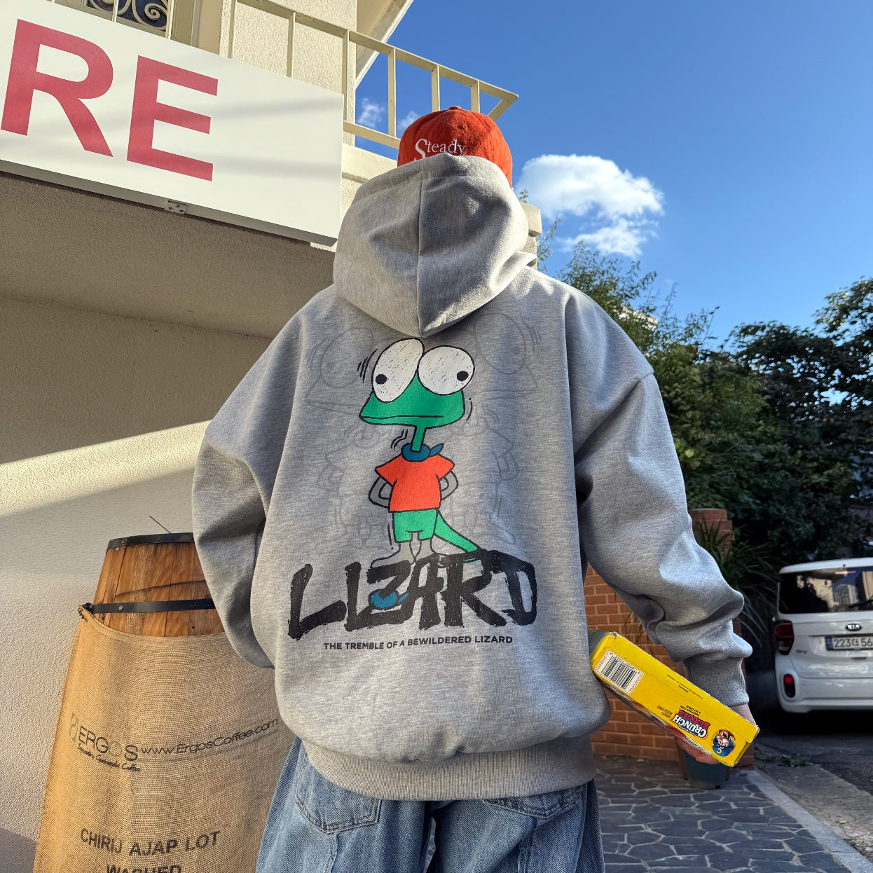 This hoodie features an expressive lizard graphic with a slightly bewildered attitude, creating a playful yet edgy back print. The hand-drawn illustration adds character and movement, giving the design a bold street-style presence without feeling overly loud.