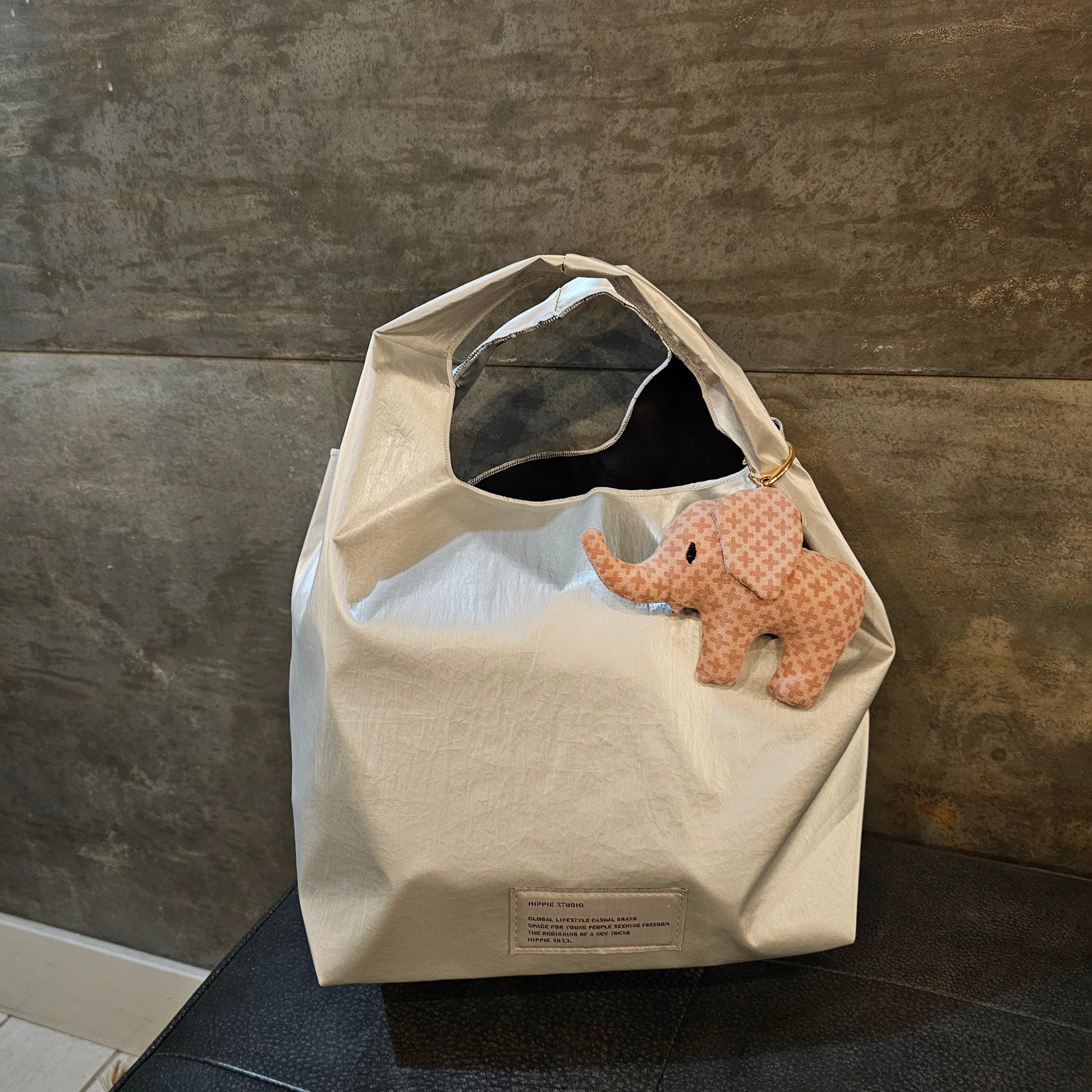 A soft handcrafted elephant charm wrapped in premium fabric with adorable details and gold accents—thoughtfully made in Korea and perfect for bags, keys, and gifting.