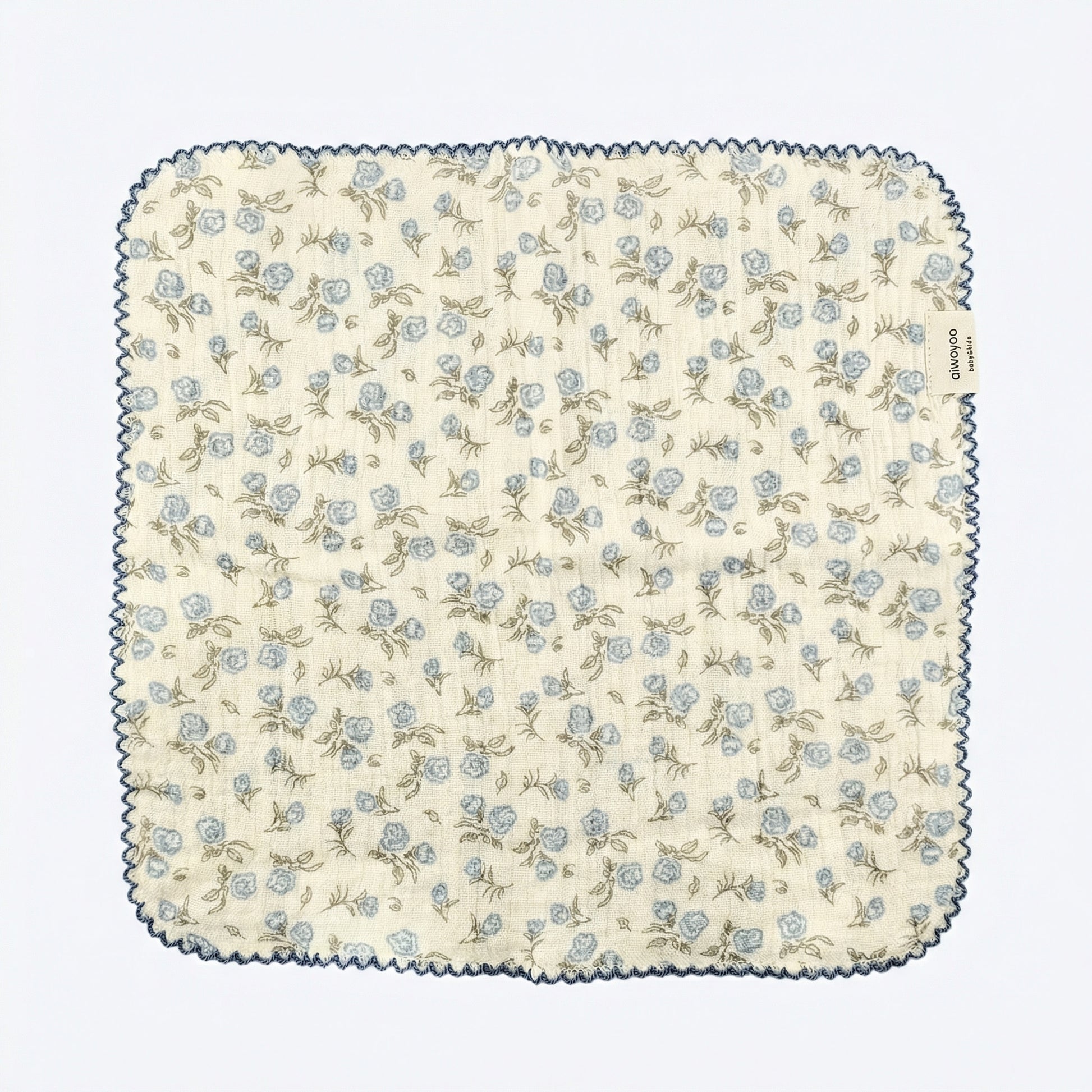 Finished with scalloped blue stitched edges for a refined touch, this versatile piece works beautifully as a daily handkerchief, baby washcloth, face towel, or a thoughtful small gift.