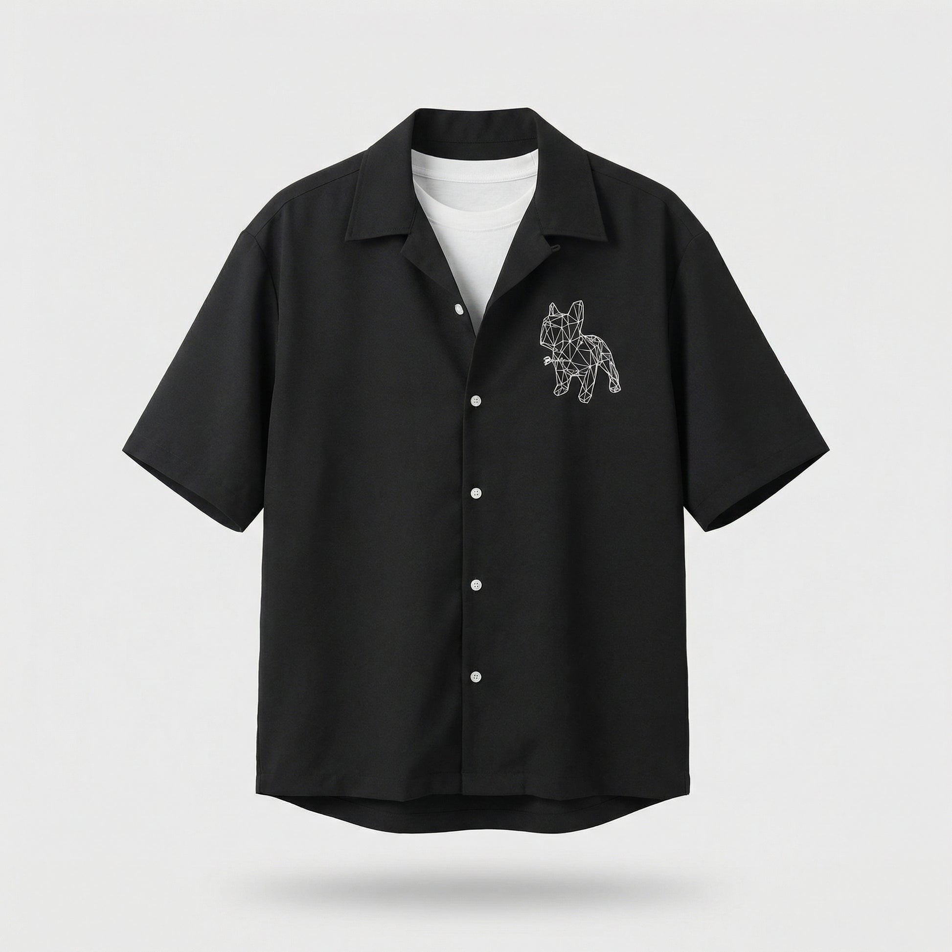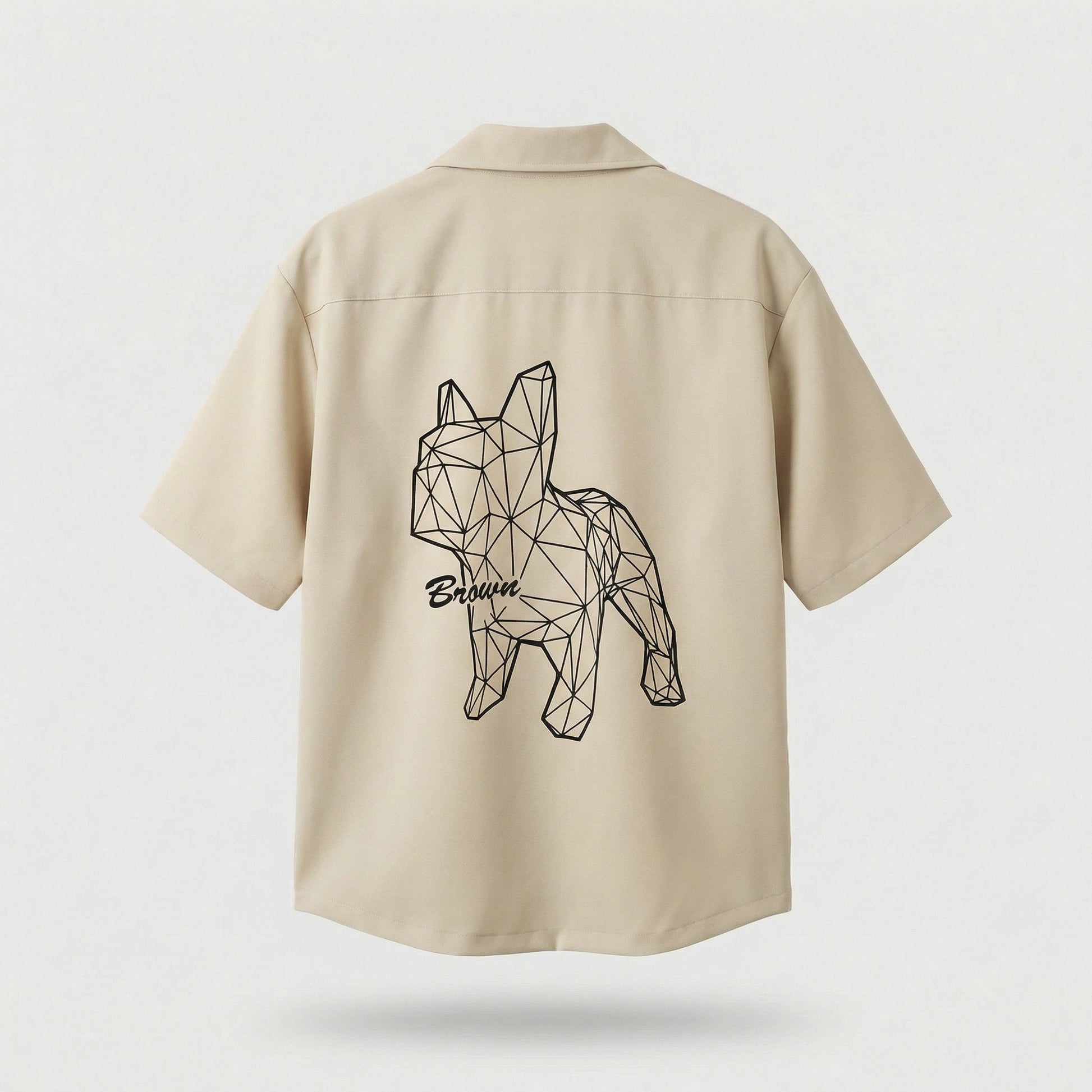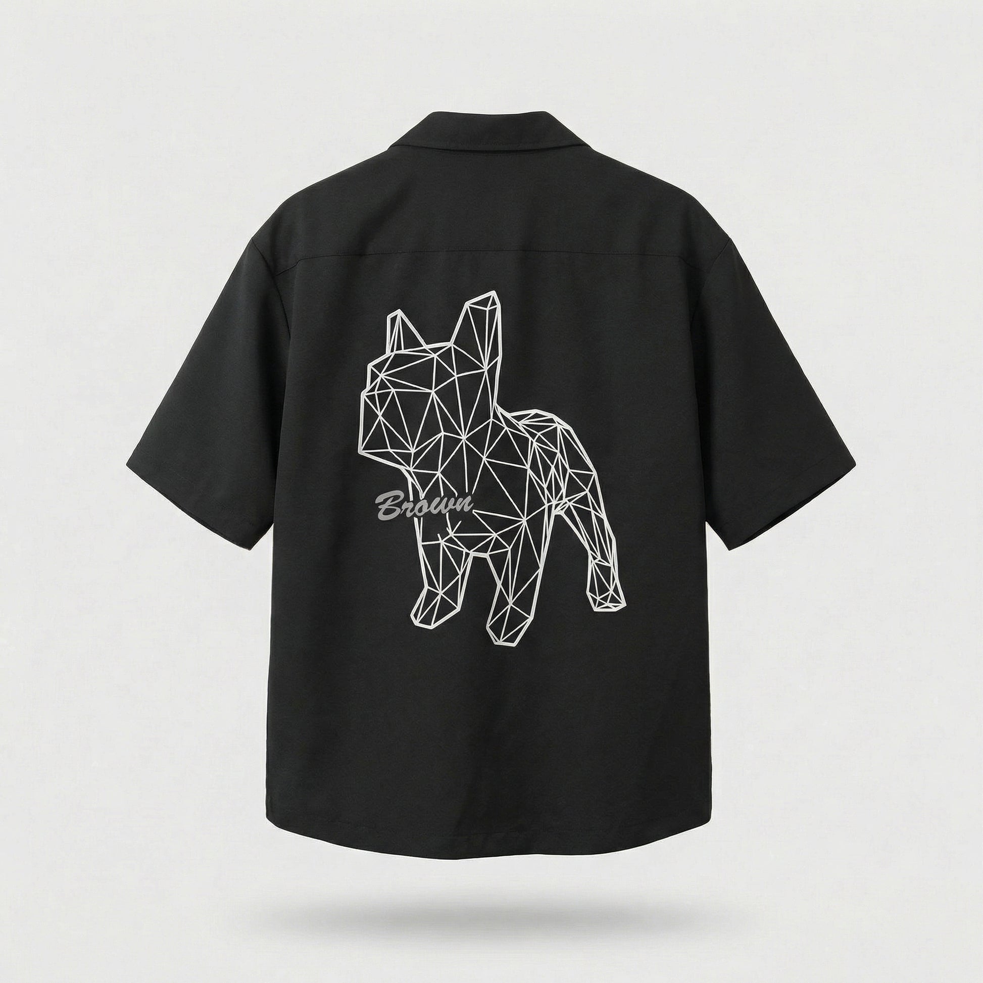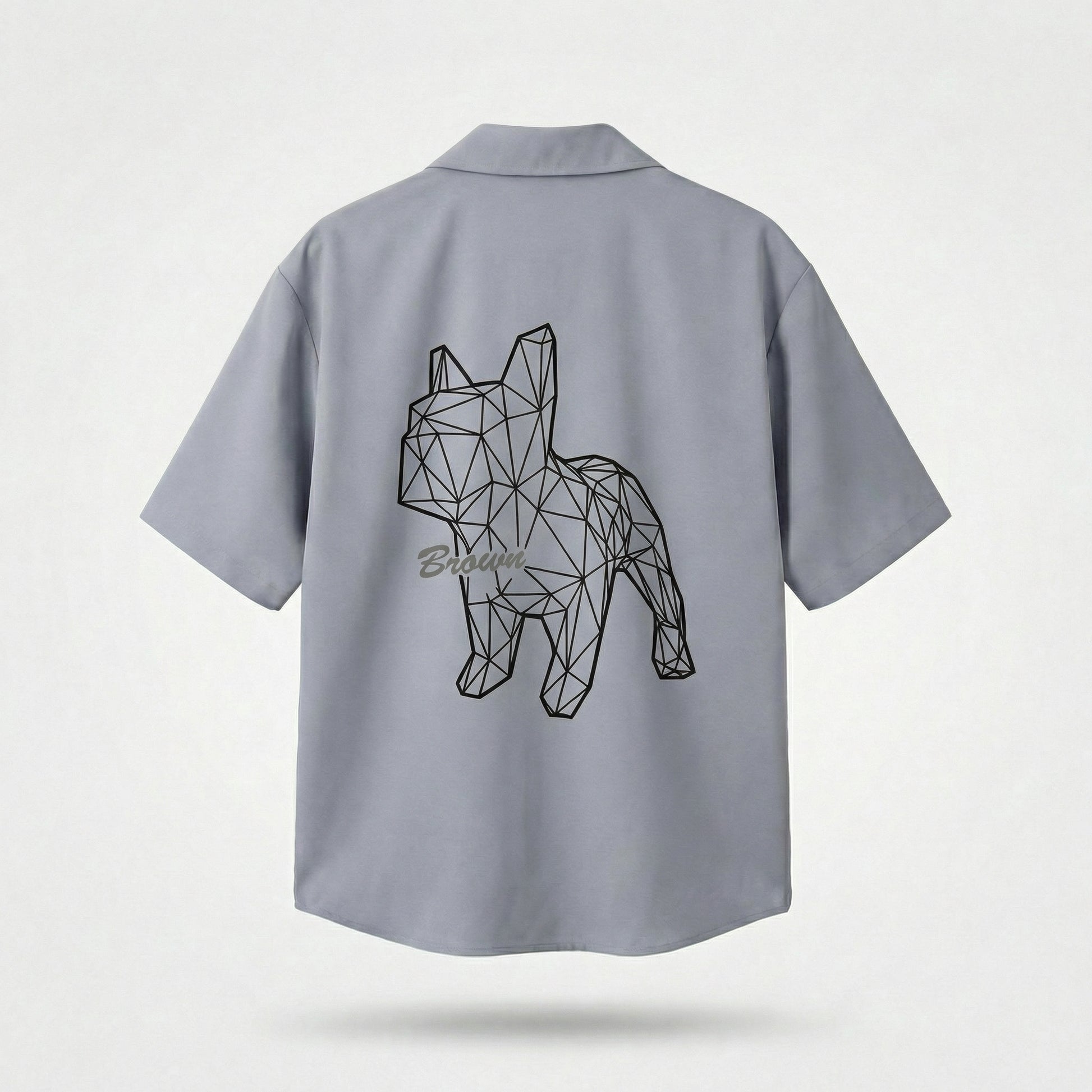 This short-sleeve shirt features a signature geometric Bulldog print that defines the entire piece. The low-poly line-art design gives the classic bulldog silhouette a modern, architectural edge — minimal yet striking.