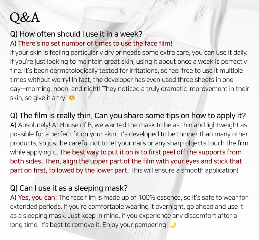 *The film mask is highly permeable and delicate. Apply gently and avoid excessive pulling.*