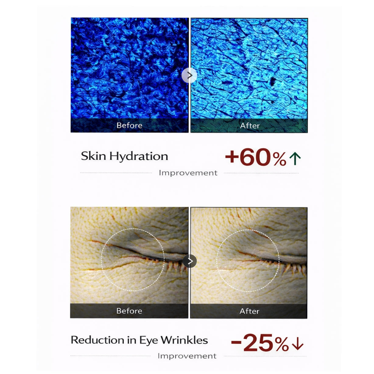 Clinically tested results demonstrate visible improvements in key aging indicators, including: