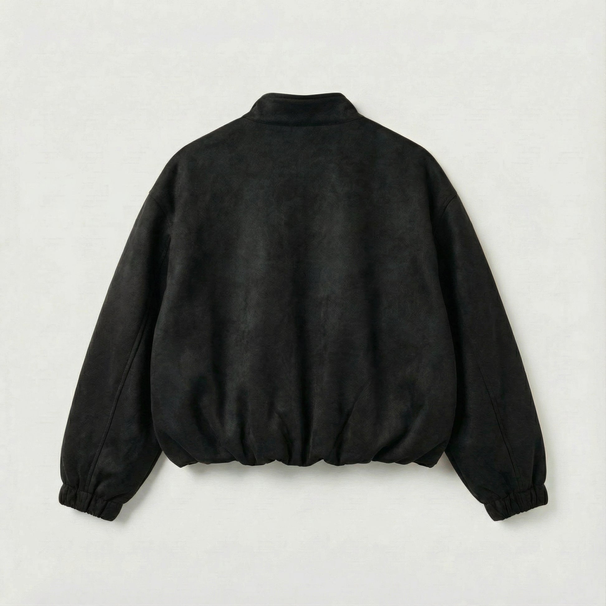 Finished with a softly shirred hem, the jacket forms a natural blouson silhouette that sits comfortably at the waist, balancing volume with structure.