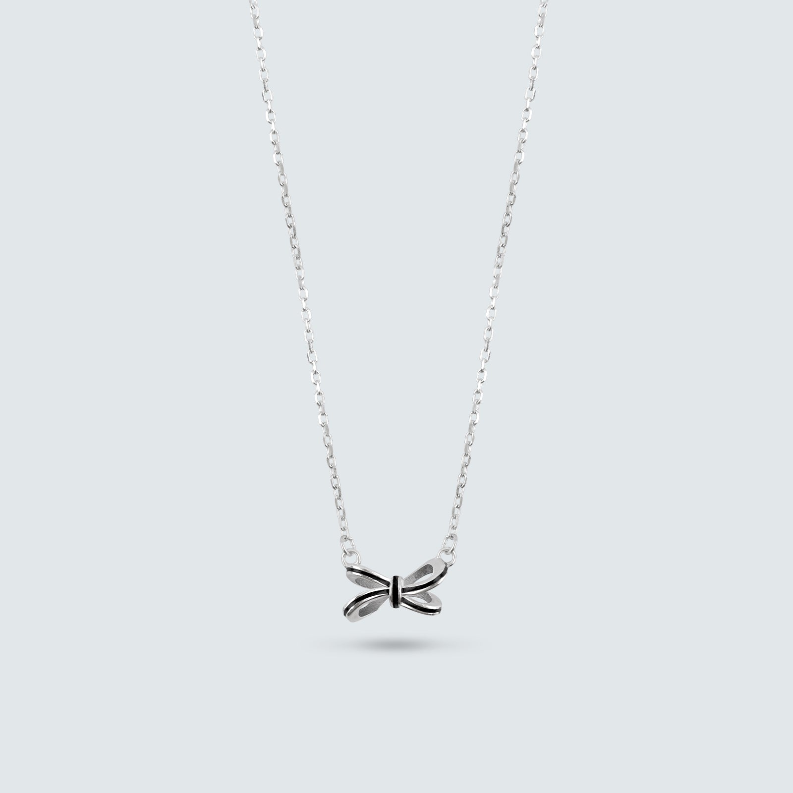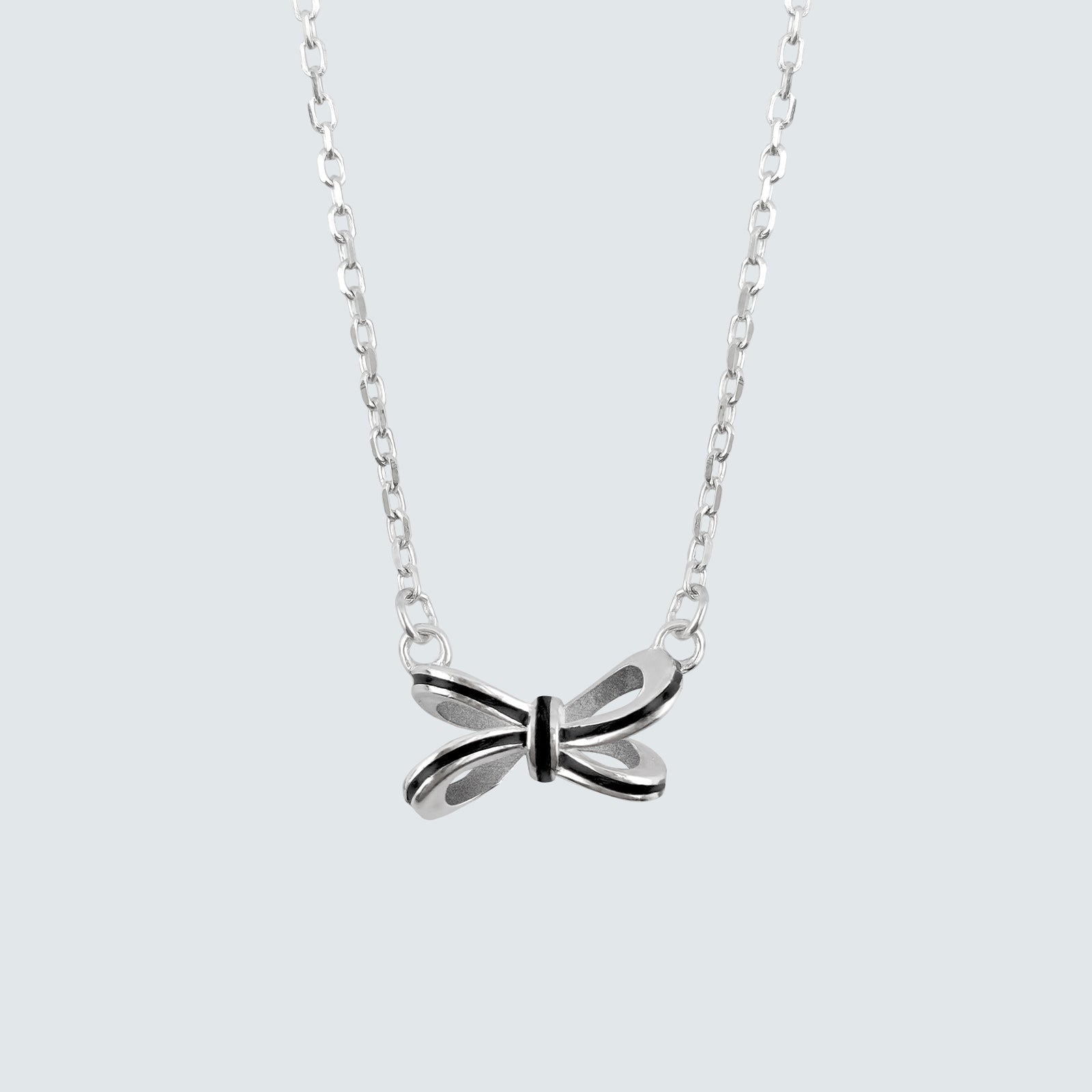 A delicate silver ribbon necklace accented with sleek black enamel, adding a touch of contrast and refined femininity — a perfect balance of soft elegance and modern charm. Complete your look by pairing it with the matching Black Enamel Ribbon Earrings.