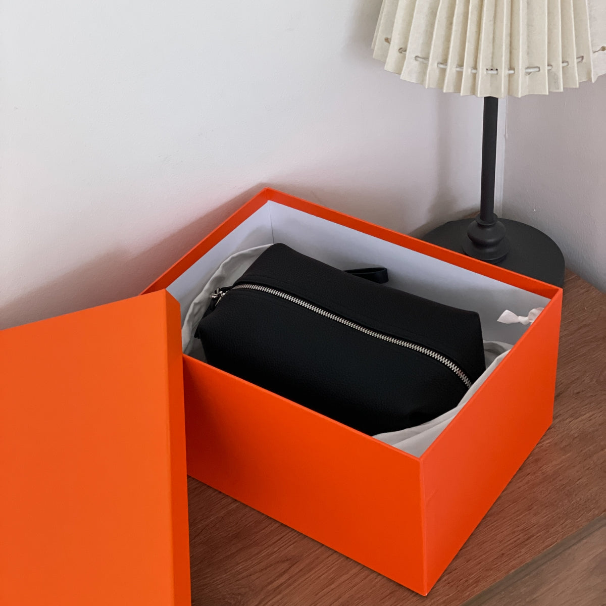 Crafted from premium full-grain cowhide leather, this clutch showcases a clean and minimal silhouette balanced with a refined, luxurious finish that appeals effortlessly to a wide range of styles. The natural grain of the leather adds depth and character, highlighting the high-quality material while maintaining a timeless, classic look. Designed with a detachable strap, it can be carried as a wrist clutch or used as an organizer inside a larger bag or golf bag, offering versatile functionality for everyday and travel use. Reinforced leather patches at each bottom corner provide added structure and durability, ensuring the bag maintains its shape while enhancing its sophisticated design details. With its understated elegance, solid construction, and thoughtful proportions, this clutch delivers both practicality and elevated style that feels modern yet enduring.