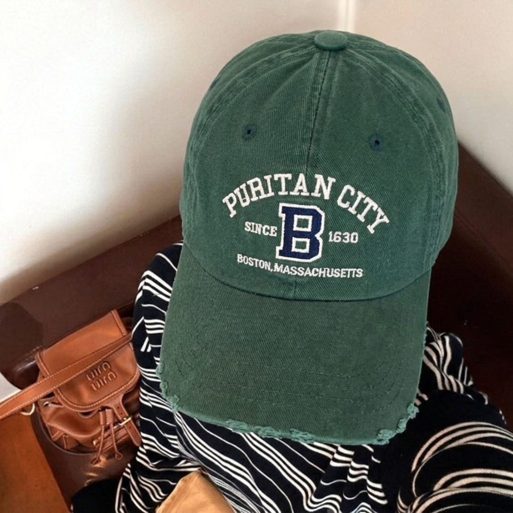 PURITAN CITY BOSTON Embroidered Distressed Cap – Mid Depth