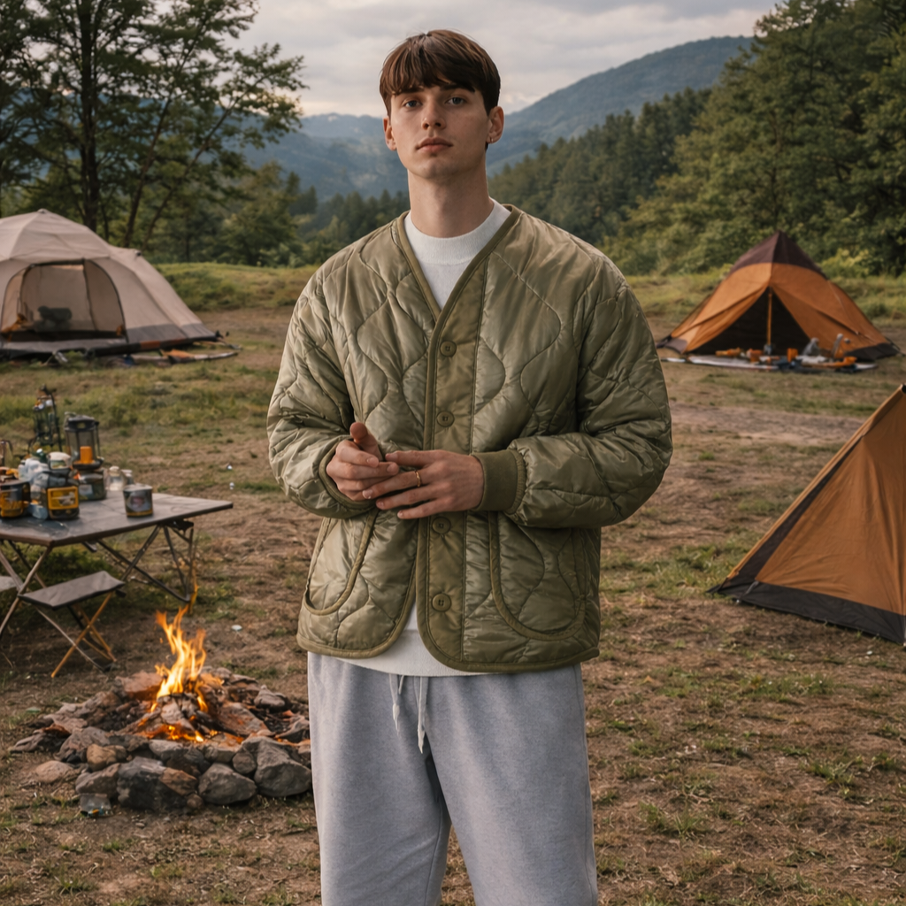This unisex quilted jacket is designed for everyday wear — light enough to layer, yet warm enough to throw on and go. The unique diagonal pocket design adds a subtle point of interest, setting it apart from ordinary padded jackets while keeping the look clean and minimal.
