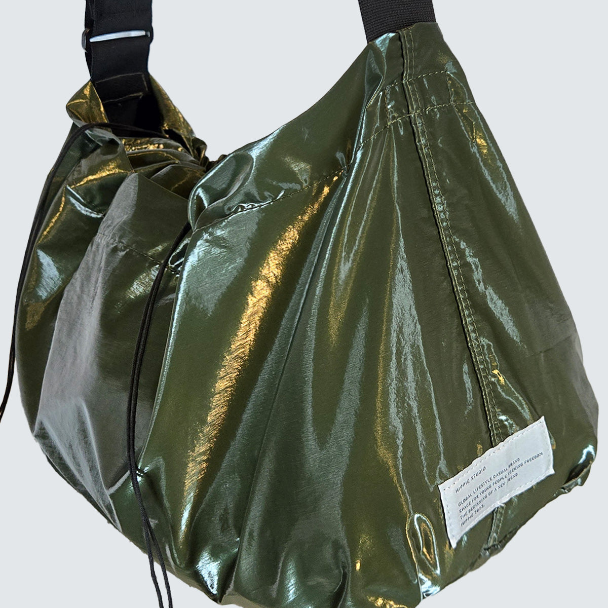 Crafted from a premium glossy crinkle fabric, this crossbody bag delivers a refined shine and sophisticated color depth that elevates any look. The lightweight, flexible silhouette drapes naturally, offering a modern urban mood with effortless ease. Finished with an adjustable strap and a spacious interior, it’s the perfect everyday companion—chic, versatile, and quietly bold.