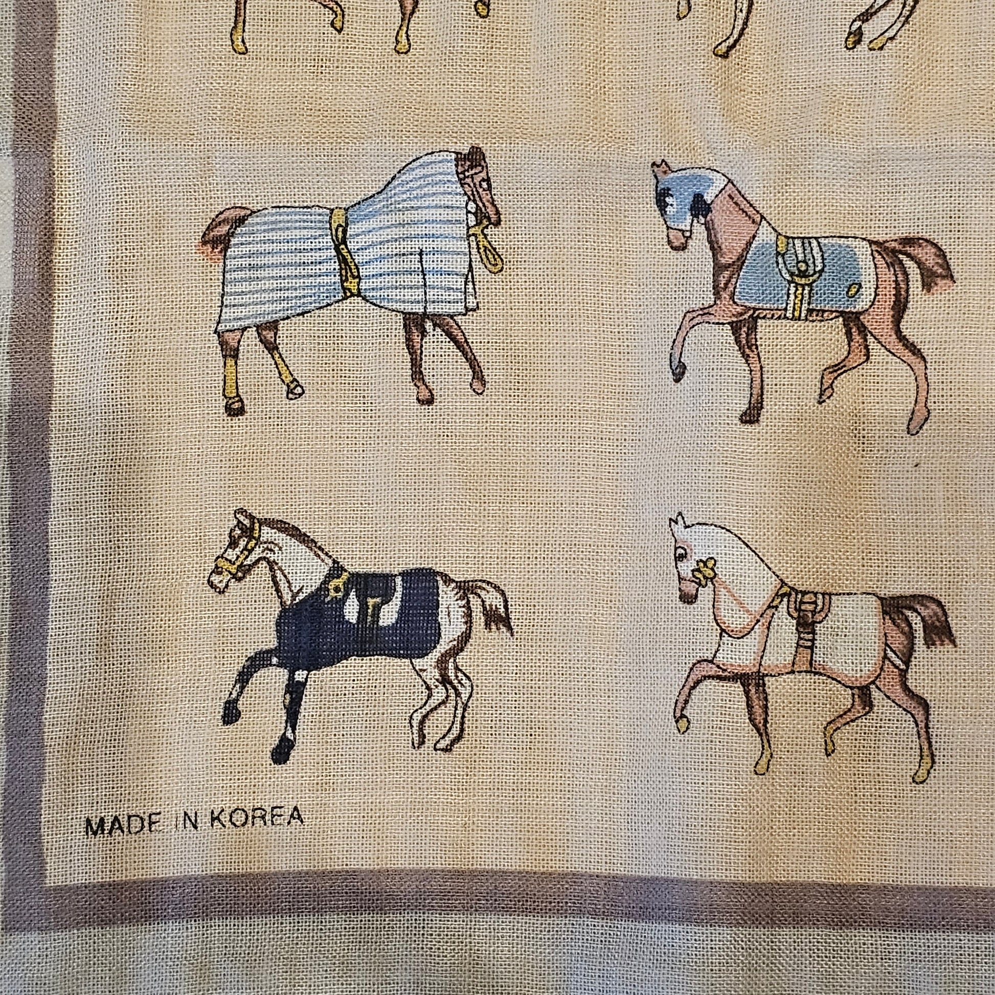 Vintage Horse Etiquette Handkerchief Apron - Soft Beige , Teal